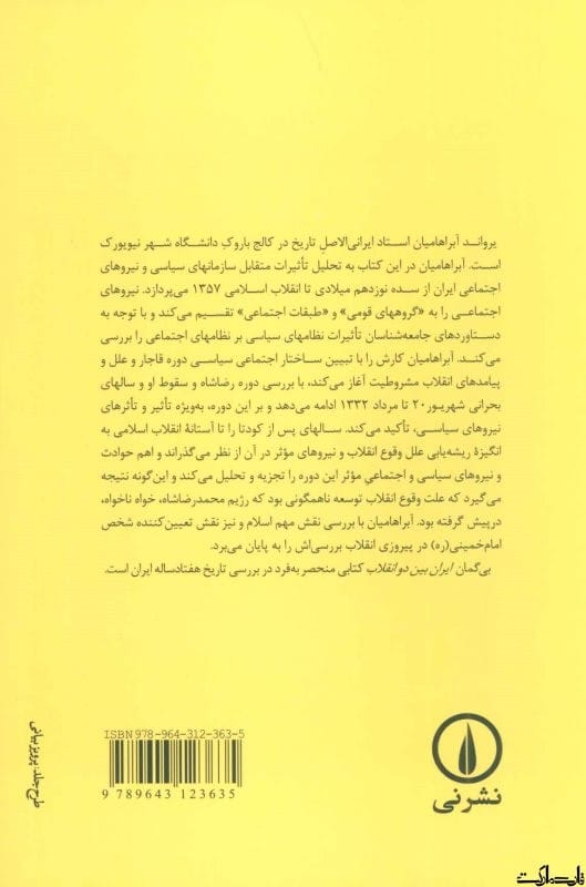 کتاب ایران بین دو انقلاب نوشته یرواند آبراهامیان با همکاری احمد گل محمدی و محمدابراهیم فتاحی ترجمه و به کوشش نشر نی چاپ و منتشر شده است.