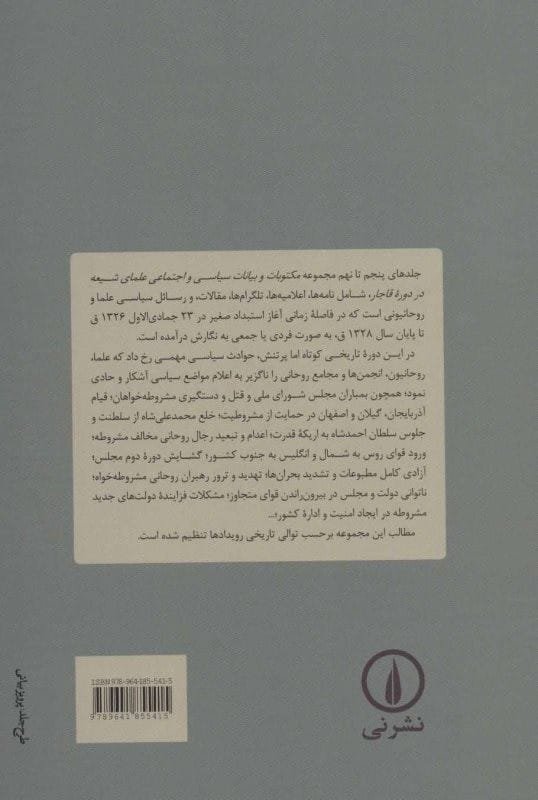 جلدهای پنجم تا نهم مجموعه کتاب مکتوبات و بیانات سیاسی و اجتماعی علمای شیعه در دوره قاجار، شامل نامه ها، اعلامیه های تلگرام ها، مقالات، و رسائل سیاسی علما و روحانیونی است که در فاصله زمانی آغاز استبداد صغیر در ۲۳ جمادی الاول ۱۳۲۶ ق تا پایان سال ۱۳۲۸ ق، به صورت فردی با جمعی به نگارش درآمده است.