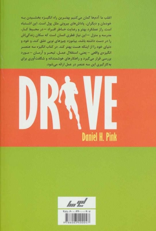 اغلب ما آدمها گمان می کنیم بهترین راه انگیزه بخشیدن به خودمان و دیگران، پاداش های بیرونی مثل پول است، این اشتباه است. راز عملکرد بهتر و رضایت خاطر افراد – در محیط کار، مدرسه و منزل – این نیاز فطری انسان است که سکان زندگی اش را در دست داشته باشد، بیاموزد چیزهای نویی خلق کند، و خود و دنیای خود را از اینکه هست بهتر کند. در کتاب انگیزه سه عنصر انگیزه ی واقعی – یعنی، استقلال عمل، تبحر و آرمان – مورد بررسی قرار می گیرد و راهکارهای هوشمندانه و شگفت آوری برای به کارگیری این سه عنصر در عمل ارائه می شود.
