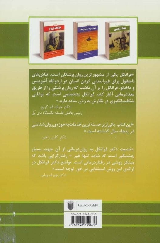 کتاب معنا درمانی یکی از برجسته ترین خدمات به حوزه ی روان شناسی در پنجاه سال گذشته است. (دکتر کارل راجرز)