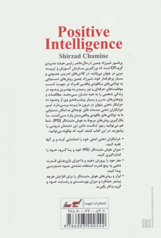 کتاب هوش مثبت نگر نوشته شیرزاد چمین توسط شهاب کامکار ترجمه و به کوشش انتشارات لیوسا چاپ و منتشر شده است.