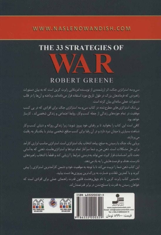کتاب 33 استراتژی جنگ اثر رابرت گرین توسط خانم فاطمه باغستانی ترجمه و به کوشش انتشارات نسل نواندیش چاپ و منتشر شده است.
