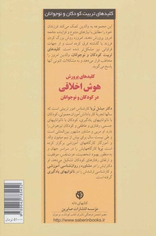 کتاب پرورش هوش اخلاقی در کودکان و نوجوانان از سری کتاب های کلیدهای تربیت کودکان و نوجوانان انتشارات صابرین نوشته میشل بربا توسط خانم فرناز فرود ترجمه شده است.