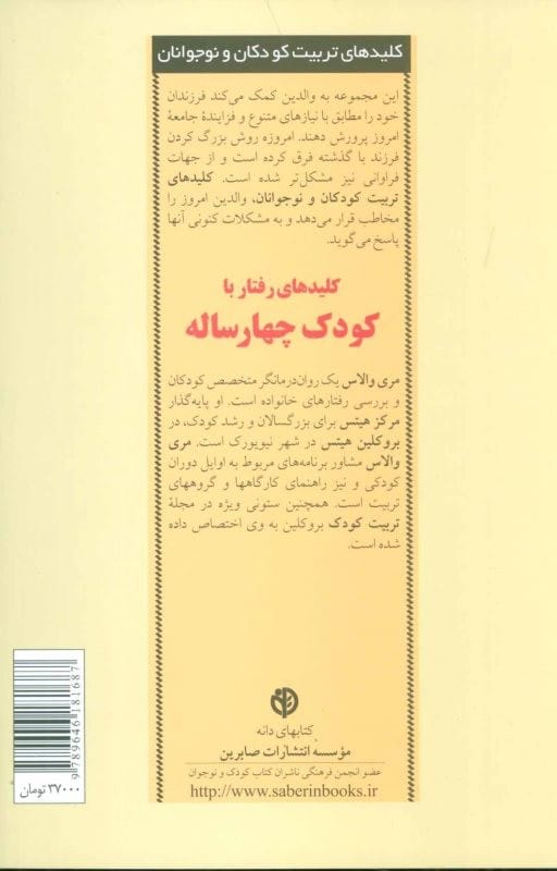 کتاب رفتار با کودک چهار ساله از مجموعه کتاب های کلیدهای تربیت کودان و نوجوانان انتشارات صابرین نوشته ی مری والاس به کوشش خانم مینا اخباری آزاد ترجمه شده است.