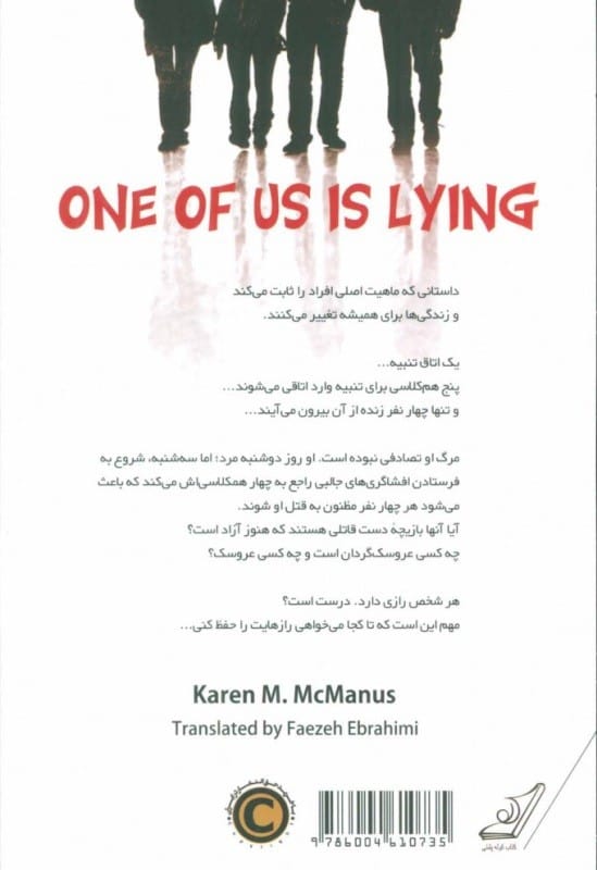 کتاب یکی از ما دروغ می گوید نوشته ی کارن.ام مک منس رمان است جنایی مناسب نوجوانان این کتاب توسط فائزه ابراهیمی ترجمه و انتشارات کوله پشتی چاپ و نشر آن را برعهده داشته است.