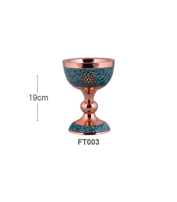 سنگاب فیروزه کوب تولید صنایع دستی آقاجانی کد FT003 دارای 19 سانتی متر ارتفاع است. در ساخت این سنگاب فیروزه کوب از مس و بهترین فیروزه نیشابور استفاده شده است. از نکات قابل توجه در مورد این محصول دارا بودن کارت گارانتی 10 ساله، استاندارد ملی ایران و استاندارد ISO9001:2015 جهانی است.