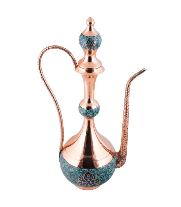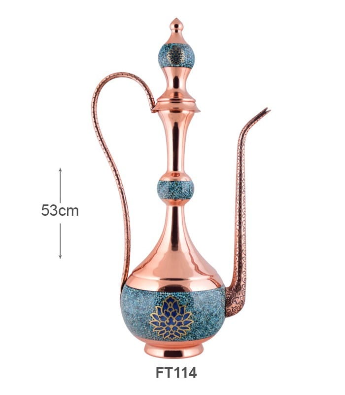 گلاب پاش فیروزه کوبی آقاجانی ساخته شده از بهترین فیروزه نیشابور و مس تولید صنایع دستی آقاجانی است. این گلاب پاش فیروزه کوب دارای استاندارد ملی ایران و گارانتی 10 ساله ی تولید کننده است. ارتفاع این محصول 53 سانتی متر است. لازم به ذکر است از آنجا که تمامی مراحل تولید گلاب پاش فیروزه کوبی آقاجانی با دست انجام می شود احتمال چند سانتی متر تفاوت در تمامی محصولات وجود دارد.